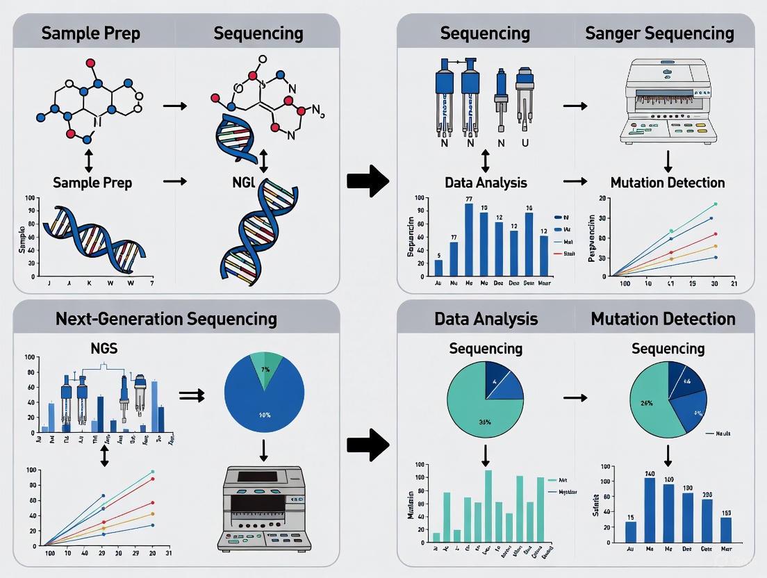 This article provides a comprehensive comparison of Next-Generation Sequencing (NGS) and Sanger sequencing for cancer mutation detection, tailored for researchers and drug development professionals. It covers the foundational principles of both technologies, explores their methodological applications in oncology, addresses troubleshooting and optimization strategies for complex genomic analyses, and critically examines validation protocols and comparative performance data. The synthesis of these four intents offers a decisive framework for selecting the appropriate sequencing technology to advance precision medicine, biomarker discovery, and therapeutic development.